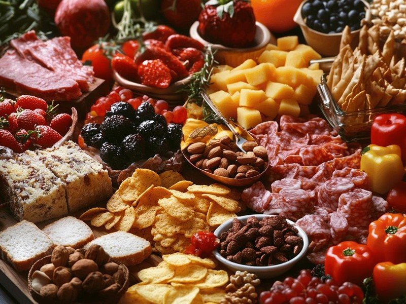 Pečivo (slané a sladké), Mléčné výrobky, Uzeniny, Trvanlivé potraviny, Sladkosti a čokolády, Slané pochutiny, Chipsy, Oříšky a sušené ovoce